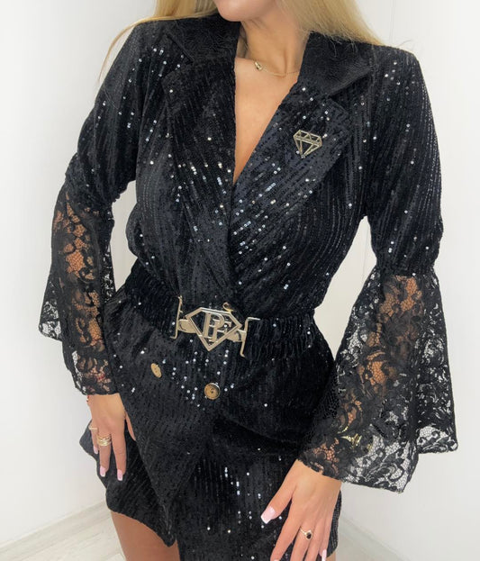 Blazer mit Pailletten und Spitze