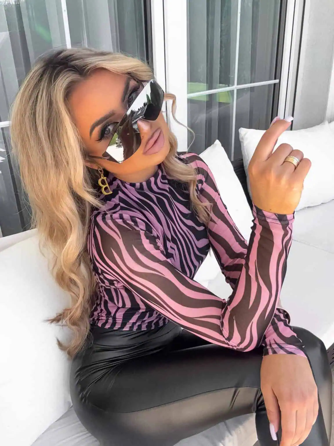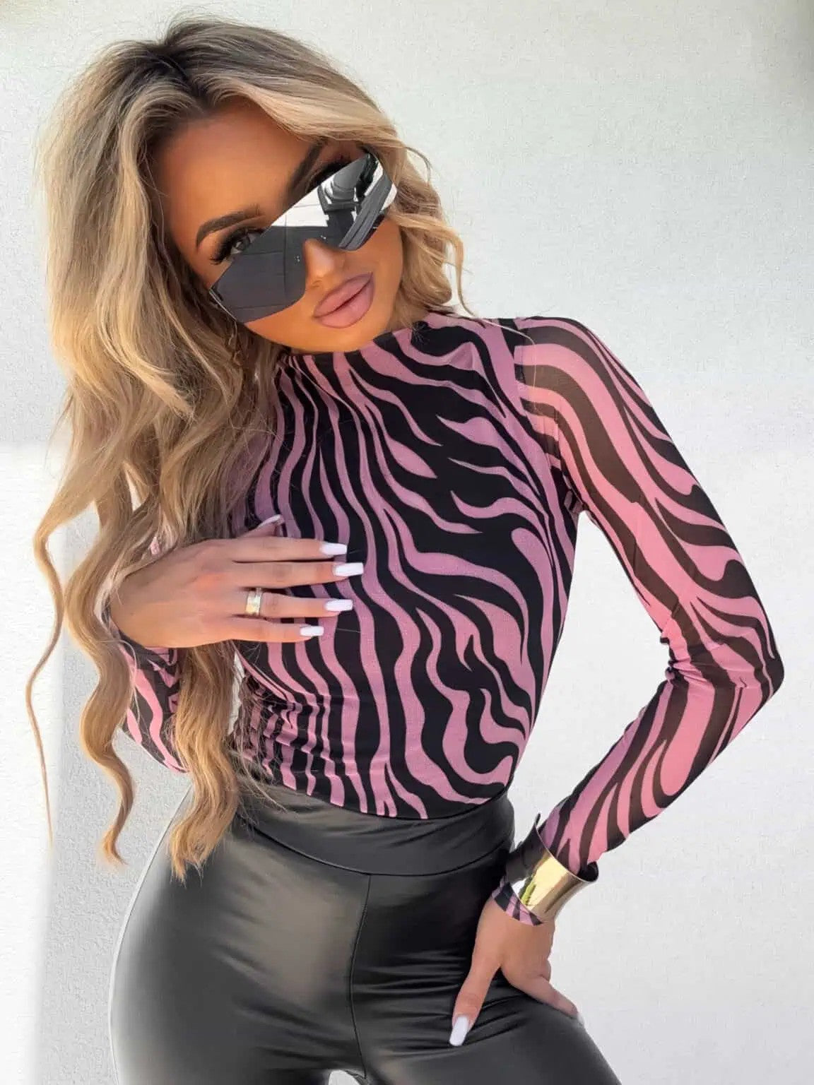 Langarmshirt SKIN transparent ZEBRA in Schwarz-Rosa
